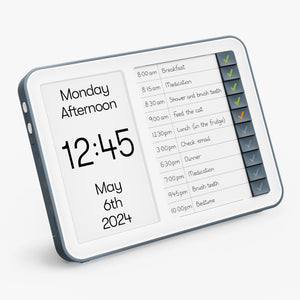 Der Day Hub von Relish ist die Antwort auf eine der ersten großen Herausforderungen für Menschen mit Demenz: den Verlust der Zeitwahrnehmung. Dieses innovative Produkt bietet eine zum Patent angemeldete Technologie, die eine anpassbare schriftliche Aufgabenliste von täglichen Aktivitäten bereitstellt - weit mehr als nur Erinnerungen im Kalenderformat.