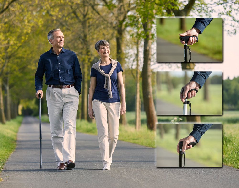 Sie können zwischen dem anatomischen Griff zur Entlastung von Fingern und Handgelenken und dem Fischergriff mit einer breiten Handballenauflagefläche wählen, ideal für Personen mit Arthritis oder Gelenkproblemen. Die Griffe sind für die rechte oder linke Hand erhältlich, um die bestmögliche Unterstützung zu bieten. Der Stock ist in verschiedenen Farben erhältlich, sodass er sich nicht nur funktional, sondern auch optisch in den Alltag integrieren lässt.