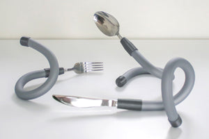 Der biegsame und verlängerte Griff passt sich jeder Handform und -motorik an, und ist sowohl für Rechts- als auch Linkshänder geeignet. Hergestellt aus flexiblem Silikon, kann der Griff ohne großen Kraftaufwand in verschiedene Formen gebogen werden, wodurch eine Vielzahl von Haltepositionen für das Besteck ermöglicht wird.