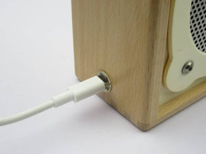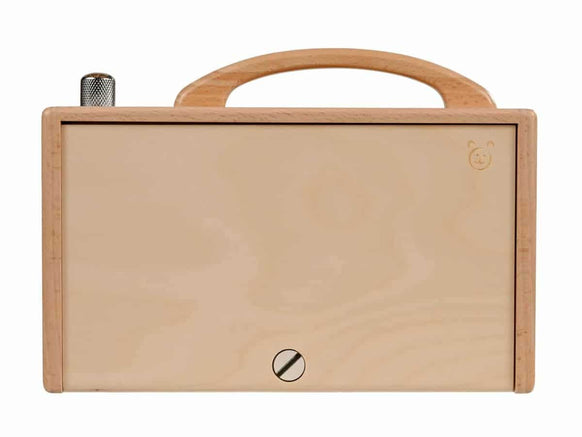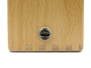 Das Gerät wird aus nachhaltigen Materialien gefertigt und ist auf eine lange Lebensdauer ausgelegt. Es darf ausschließlich mit Akkus betrieben werden. Einweg-Batterien sind nicht zugelassen. Aufgrund der Holzverarbeitung kann die Farbe und Maserung des Gehäuses variieren.