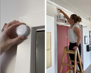 Die Otiom Exit Base schränkt den Zugang zu einem Bereich für ein Otiom Tag ein, das so konfiguriert ist, dass es auf Otiom Exit Bases reagiert, und löst in der Otiom App einen Alarm aus, wenn die Exit Base von dem Otiom Tag erkannt wird. Dadurch wird eine eventuell definierte