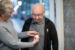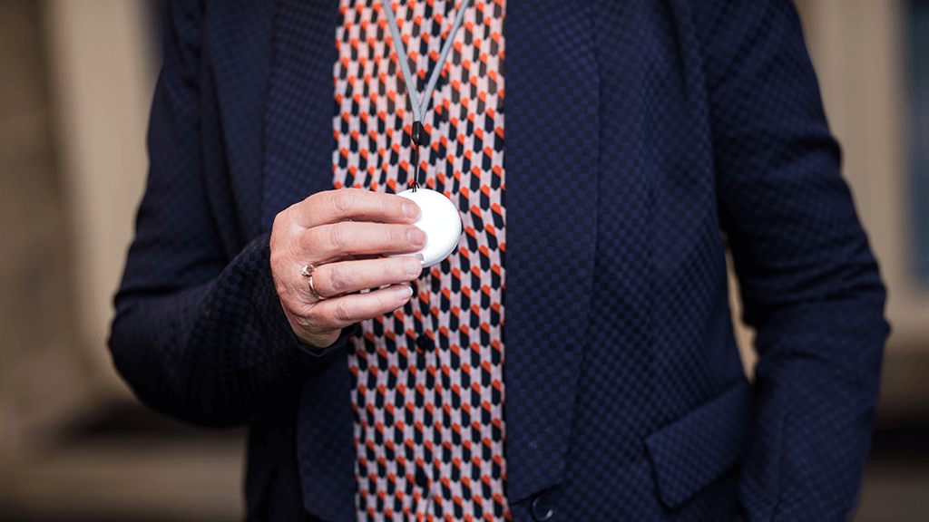 Das Otiom-Gerät kann desinfiziert und bei bis zu 60 °C in der Waschmaschine gewaschen werden. Das ist wichtig, wenn der Otiom-Tag in der Kleidung eingenäht ist.