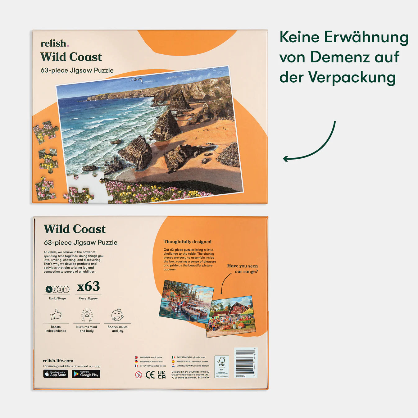 Das liebevoll ausgewählte Motiv einer malerischen Atlantikküste lädt zum Träumen ein, weckt Erinnerungen und fördert die Kommunikation mit Angehörigen und Betreuern. Durch die klaren Farben und die stabilen Teile eignet sich das Puzzle auch für Menschen mit eingeschränkter Feinmotorik oder Sehschwäche.