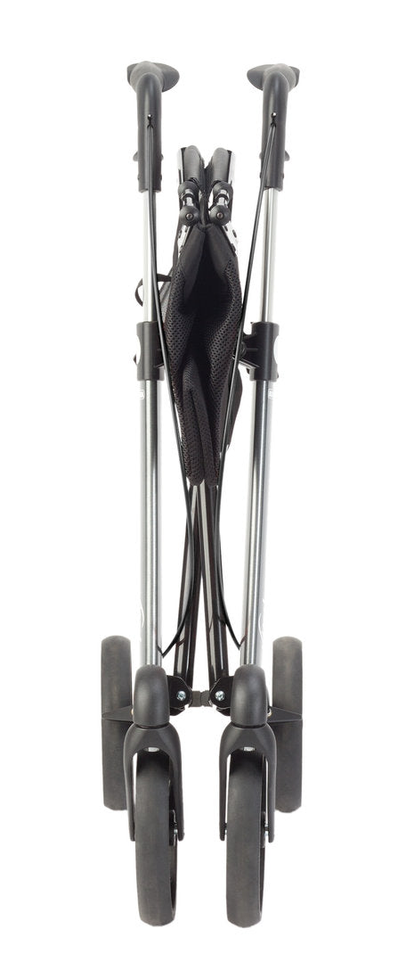 Das leichte Aluminiumgestell lässt sich mit wenigen Handgriffen zusammenfalten und platzsparend verstauen. Die magnetische Faltsicherung sorgt dafür, dass der Rollator dabei stabil bleibt und sich leicht transportieren lässt. Für zusätzlichen Komfort sind die Handgriffe ergonomisch geformt und können dank der nummerierten Skala mühelos in der Höhe angepasst werden.
