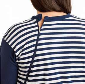 Suprima Pflege-Schlafanzug Maritim, lang, Rücken- und Beinreißverschluss – Baumwolle - Damen