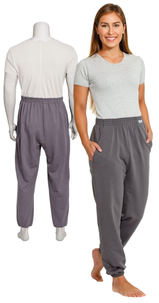 Der suprima Pflegeoverall „Jogging“ eignet sich für Frauen und Männer mit Demenz, die sportlich aktiv werden und sich bequem kleiden möchten. Ein Zugriff auf das Windel- und Inkontinenzmaterial durch die Demenzpatientin wird durch einen Reißverschluss am Rücken zuverlässig verhindert. Das vereinfacht das An- und Ausziehen durch den pflegenden Angehörigen: Der Overall muss nicht über den Kopf an- und ausgezogen werden. Shirt und Hose fest miteinander verbunden, was ein Selbstentkleiden verhindert. Die Hose verfügt vorne über echte Taschen. Hautfreundliches Material sorgt für höchsten Tragekomfort bei Aktivität und auch in Ruhephasen.