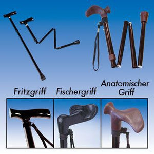Faltbarer Aluminium-Gehstock mit Spezial-Griff, höhenverstellbar, für Links- oder Rechtshänder