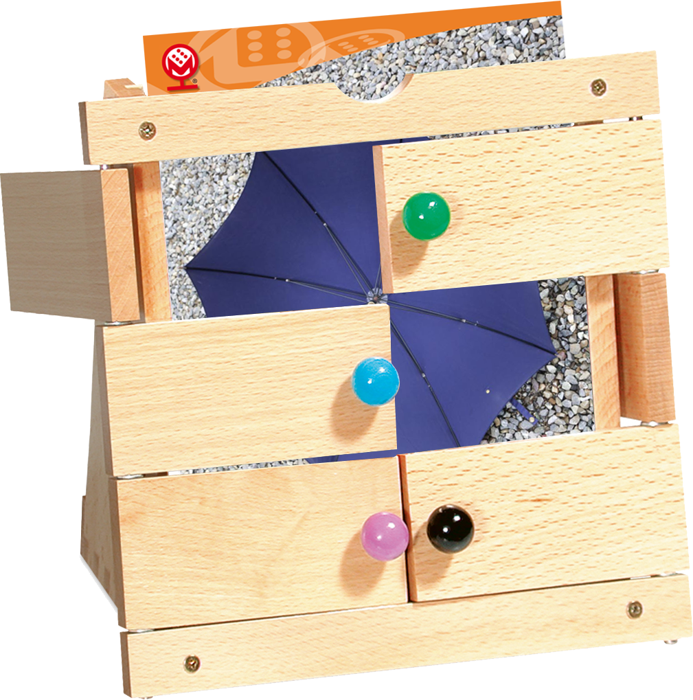 • Robustes Spielmaterial und Farbwürfel aus Holz