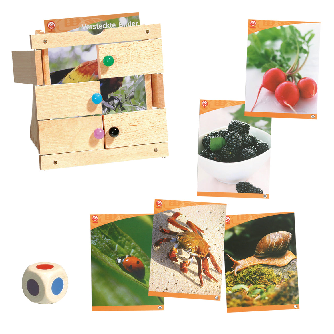 „Versteckte Bilder – Naturfotos“ ist ein einladendes und aktivierendes Ratespiel, das besonders gut für Seniorinnen und Senioren sowie für Menschen mit Demenz geeignet ist. In einem hochwertigen Holzgestell aus massiver Buche verbergen sich stimmungsvolle Naturmotive, die durch das Öffnen der Klappen nach und nach sichtbar werden. Ein Farbwürfel bestimmt spielerisch, welche Fläche freigelegt wird – so entsteht ein sanfter, intuitiver Zugang zu Bildern, die Erinnerungen wecken und Gespräche anregen.