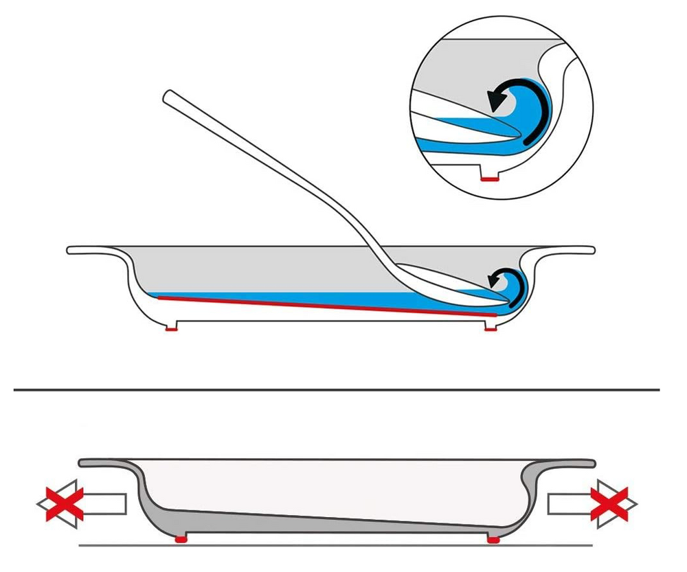 Aufgrund der versteckten Tricks kann der Teller völlig intuitiv genutzt werden und muss nicht ausgerichtet werden, denn er funktioniert für jede Führung des Löffels und für Links- und Rechtshänder.